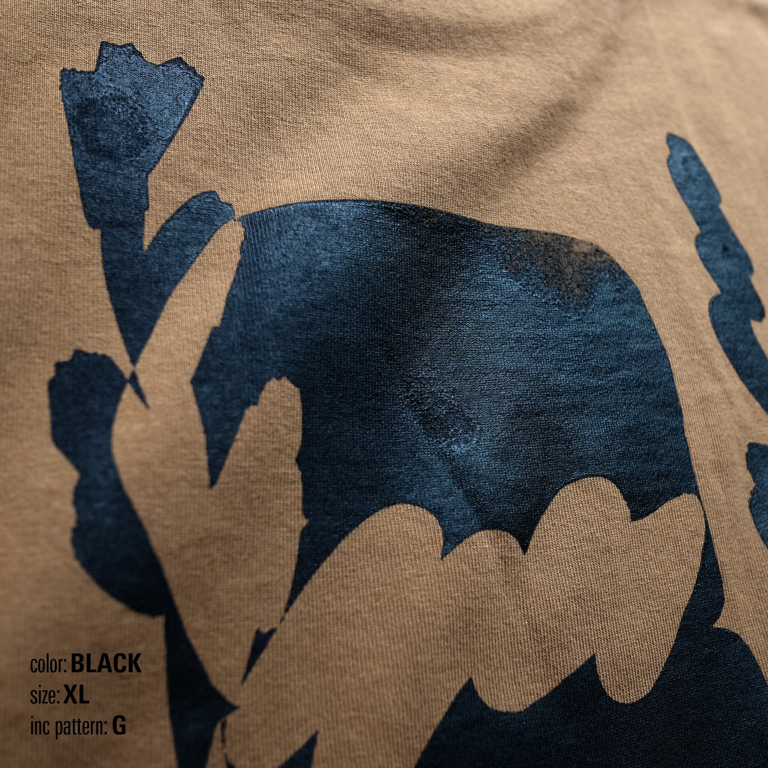IWAMATSU SHOWTEN が大切にしている「一点ものづくり」のマインドで、今回も「一枚一枚が大切な作品」という思いで、丁寧にシルクスクリーンプリントを施させていただきました。いつもの通り、全てが一点ものです。今シーズン特にこだわったのはインクの乗せ方。インクの表現だけでも無限に表情を変化させることができるという改めての気付きもあり、毎度のことながら制作で新しい発見をいただいています。かすれることで感じられる哀愁のような感覚、ぼってりと厚みのあるインクの照り感からは力強さを感じたりと、まるで毎日見ていても毎回感動させられる十勝の景色を見ているかのような… そんな Tee shirts をお作りすることができました。